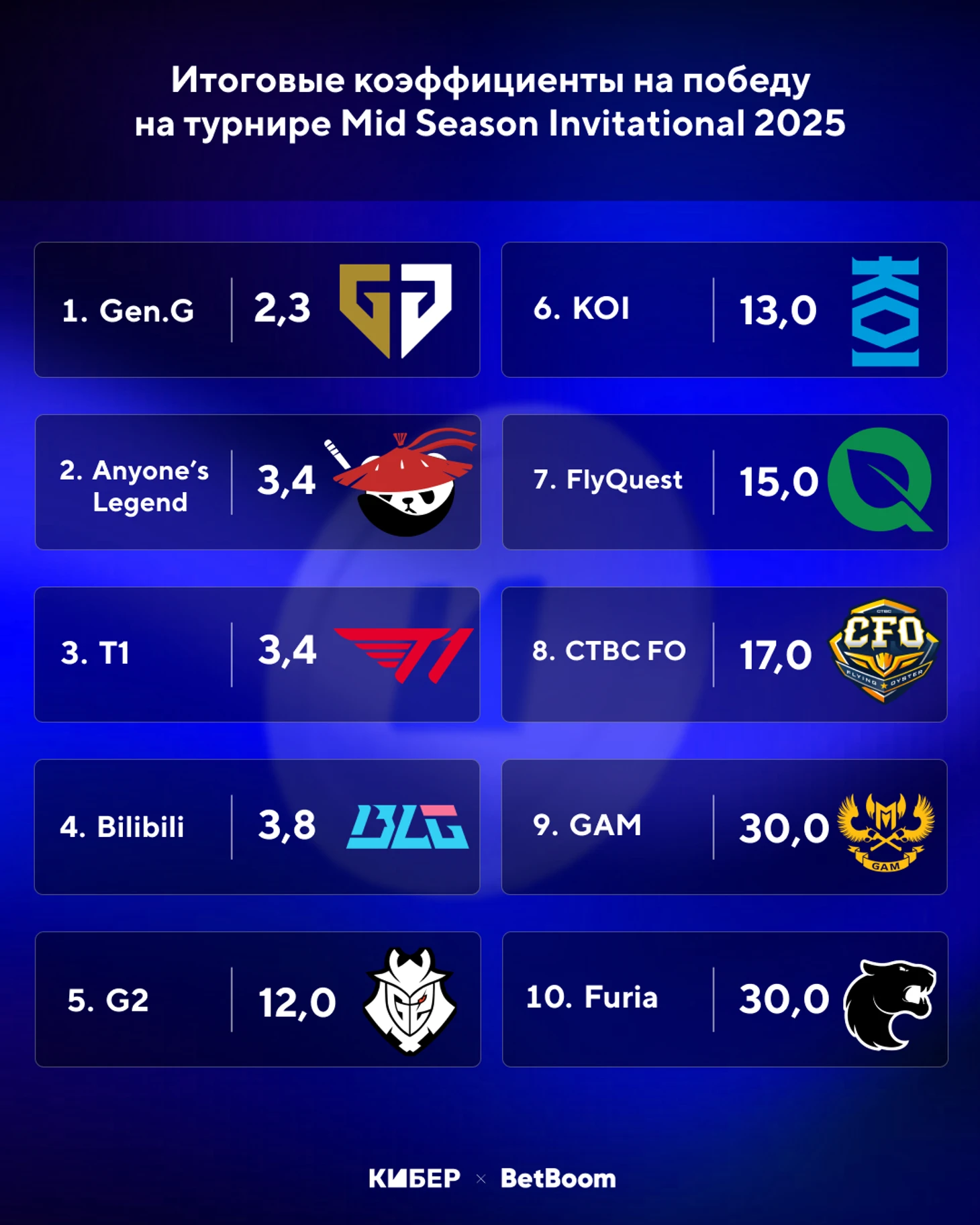 Сразу четыре претендента на победу. Разбираем коэффициенты на Mid-Season Invitational 2025 по LoL