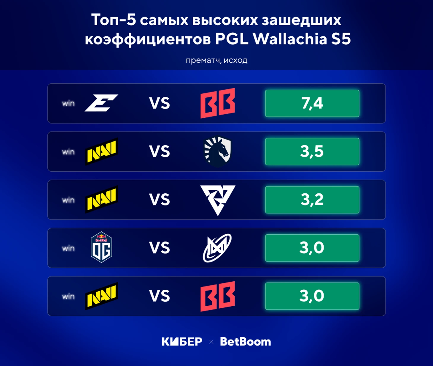 BetBoom Team выиграла PGL Wallachia S5 и прервала серию побед Liquid на этом турнире. Хотя начало чемпионата выдалось тяжелым для команды, ее победа не стала большой неожиданностью, потому что букмекеры прогнозировали BetBoom Team место в топ-4.