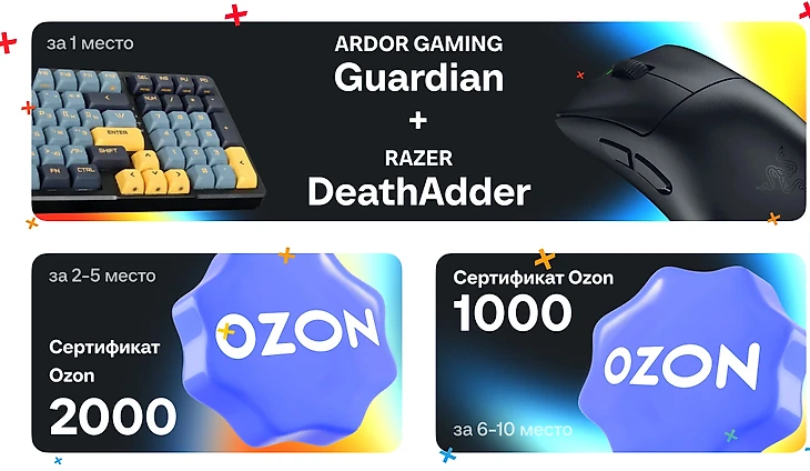 2-5-е место: сертификат Ozon на 2000 рублей;