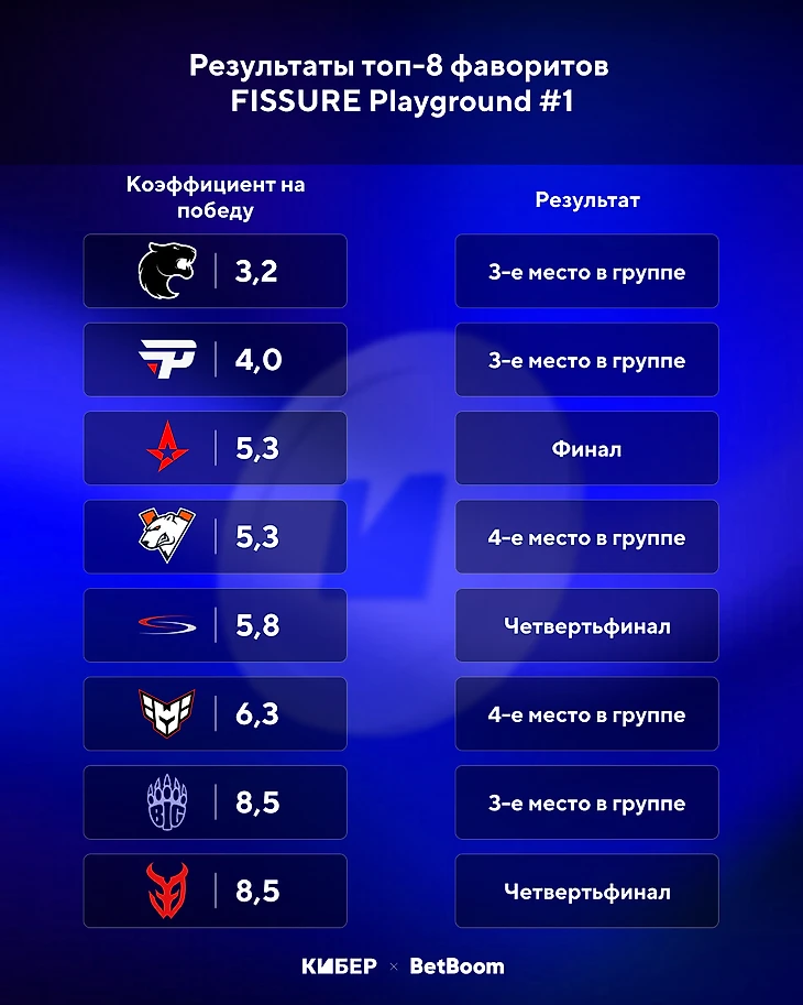 Из топ-8 команд по прогнозам BetBoom в плей-офф вышли только три, а до финала дошла только Astralis и проиграла.