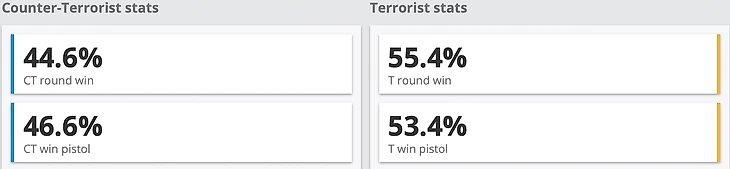 За последний год отставание CT на про-сцене стало еще очевиднее – защита выиграла только 44% раундов.