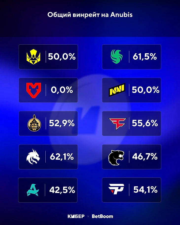 Статистика топ-команд на Anubis