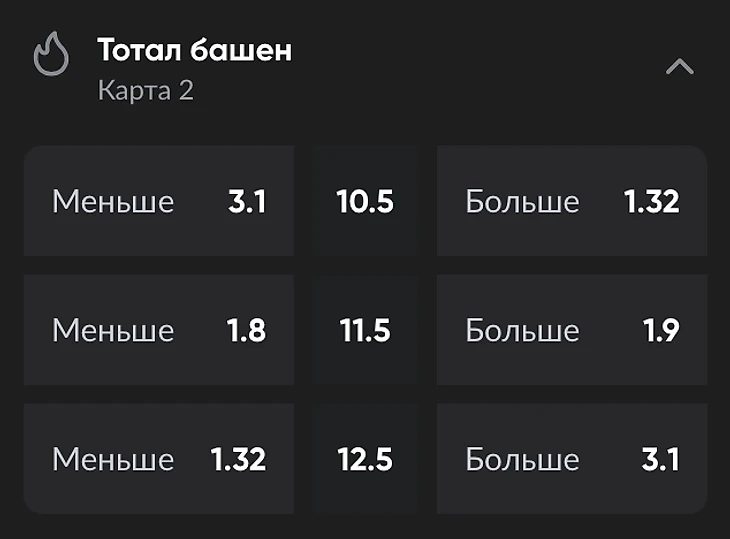 Тотал башен – ставка на то, какое количество башен будет разрушено обеими командами за время игры.
