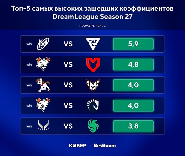 Закончился последний крупный турнир по Доте в этом году – DreamLeague Season 27. И под Новый год он сделал нам неожиданный подарок – Team Yandex впервые выиграла тир-1 чемпионат. Об этом и других высоких кэфах с Дримлиги поговорим ниже.