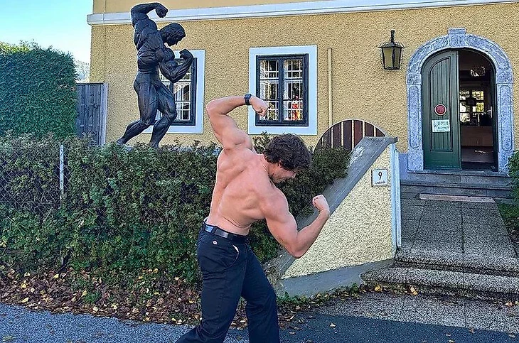 Внебрачный сын Арнольда Шварценеггера повторил легендарную позу отца