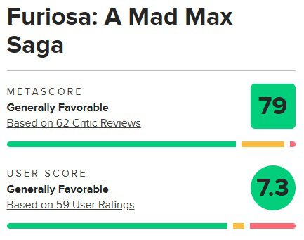 «Фуриоса» получила 90% свежести на Rotten Tomatoes и 79 баллов на Metacritic