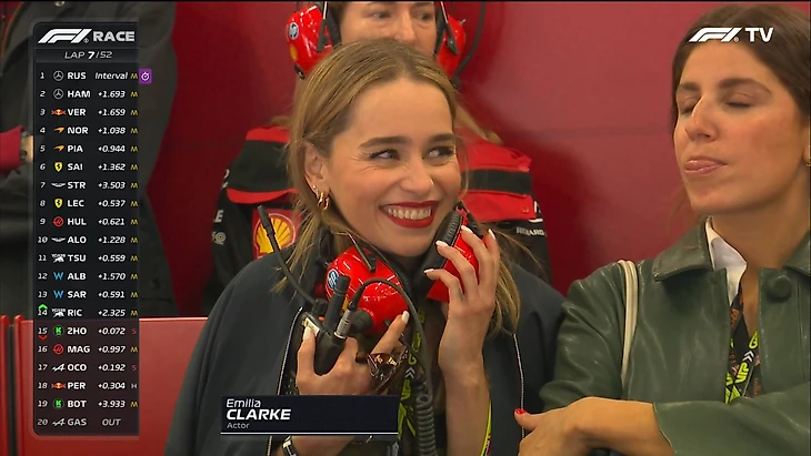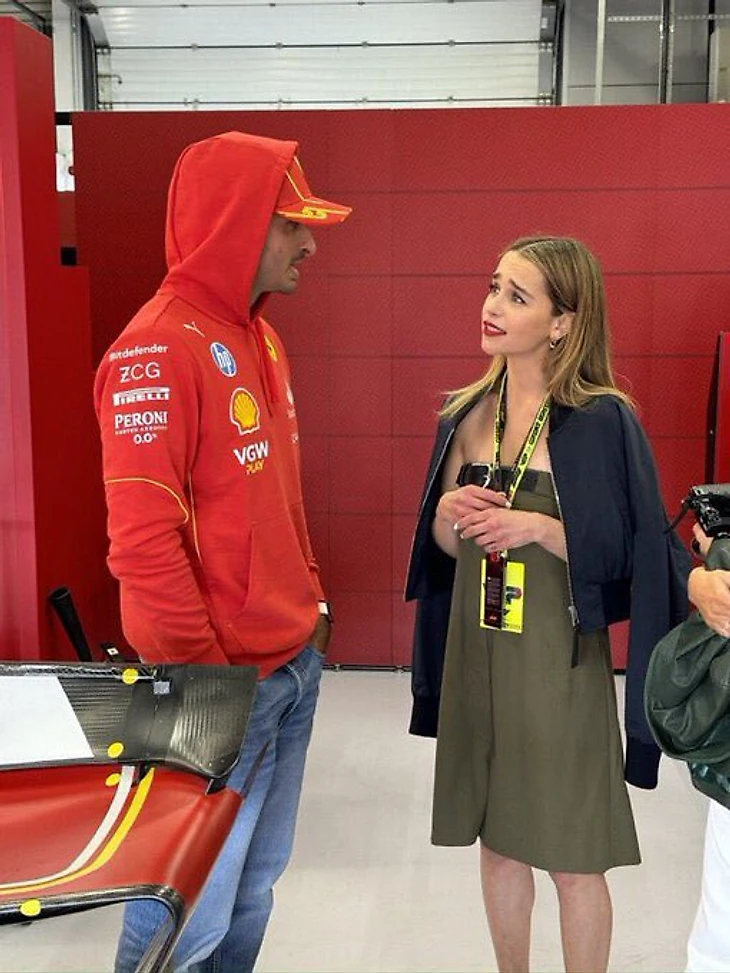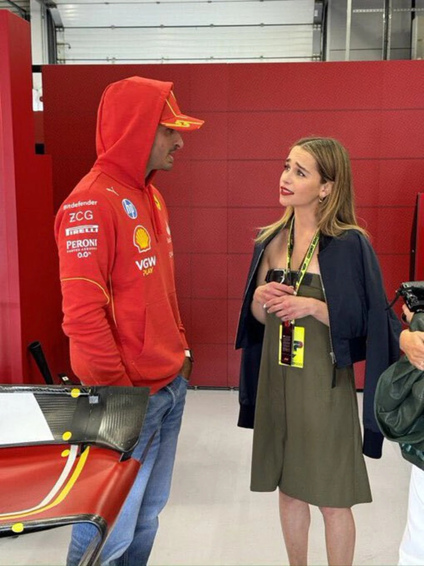 Британская актриса, сыгравшая Дейенерис Таргариен в сериале «Игра престолов» и Сару Коннор в фильме «Терминатор: Генезис», также пообщалась с Шарлем Леклером и Карлосом Сайнсом перед гонкой.