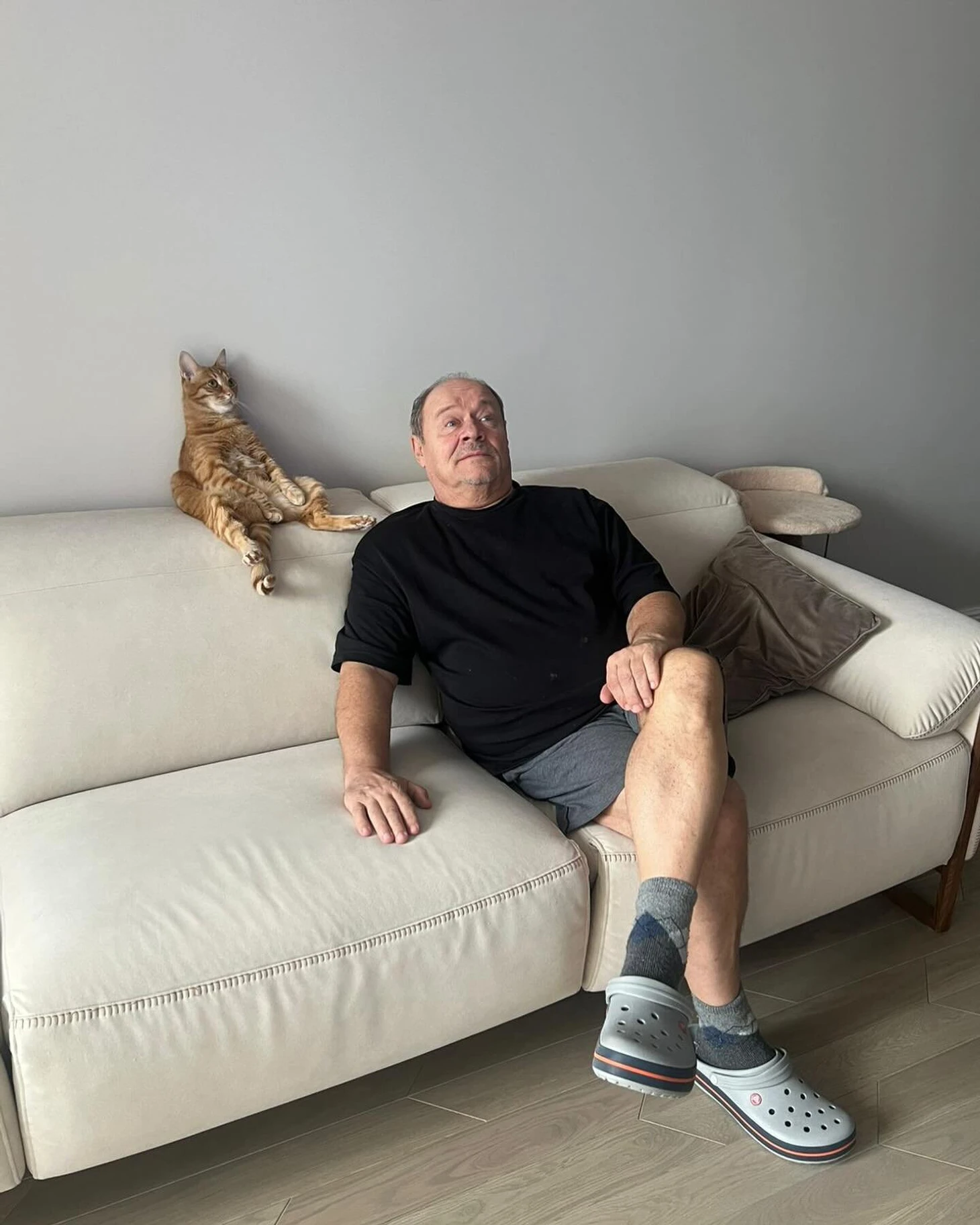 Алексей Маклаков, сыгравший Шматко в «Солдатах», выложил фотографию со своим котом: «Каждый думал о своем!»