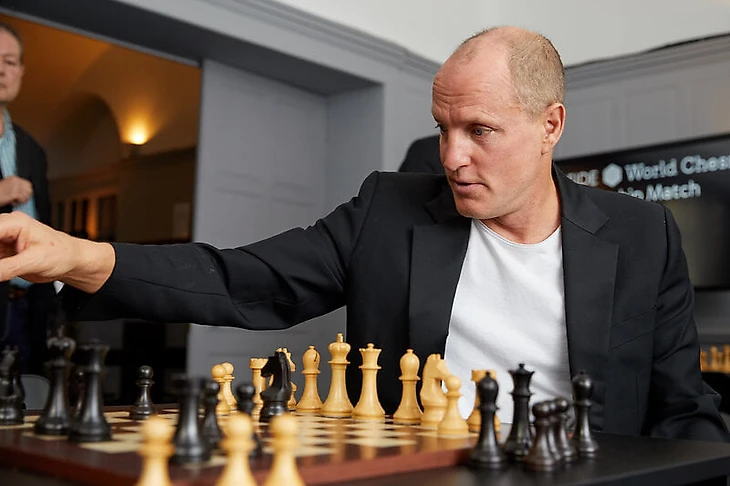 На крупных шахматных турнирах право первого хода предоставляют селебрити. Харрельсон удостаивался этой чести дважды: в 2016 и 2018 году.