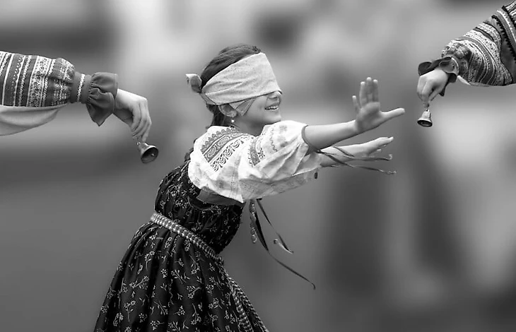 Игроки жребием выбирают водящего и завязывают ему глаза плотной тканью, затем раскручивают его на месте и разбегаются. Водящий должен поймать других участников вслепую, но еще и опознать свою добычу. Тут-то происходящее накаляется до предела: если водящий правильно опознает пойманного, то устранят последнего, а если ошибется – самого водящего.