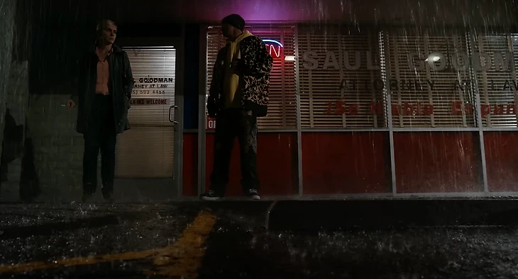 Чего у «Сола» точно не отнять – визуальную красоту. Винс Гиллиган и Питер Гулд (а также операторы Артур Альберт, Маршалл Адамс и Пол Донахи), кажется, искали самый необычный и зрелищный ракурс в каждой сцене. Сочетание цветов, всегда богатый задний фон, скрытые рифмы, игра с отражениями – я правда не понимаю, как у «Сола» до сих пор нет ни одной награды за лучшую операторскую работу.
