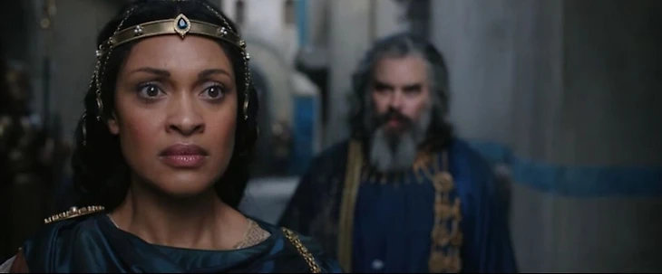 Тем временем Галадриэль и Халбранд в безопасности. Они плывут на корабле, с подобравшими их моряками – но неизвестно в какой порт. Им оказывается легендарный остров Нуменор. Это самое величественное и красивое место, где проживает человеческий род. Нуменорцы получили этот остров в качестве вознаграждения за союз с эльфами. Хотя сейчас отношения нуменорцев и эльфов несколько натянуты. Это очевидно из их приема. Королева-регентша Мириэль совсем недовольна появлением Галадриэль.