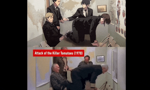 Про «Человека-бензопилу» знают даже хейтеры аниме. Дело в заставке, где нарисовали отсылки на десятки культовых фильмов: от «Криминального чтива» до «Нападения помидоров-убийц». Неудивительно, что опенинг обсудили в каждом Телеграм-паблике.