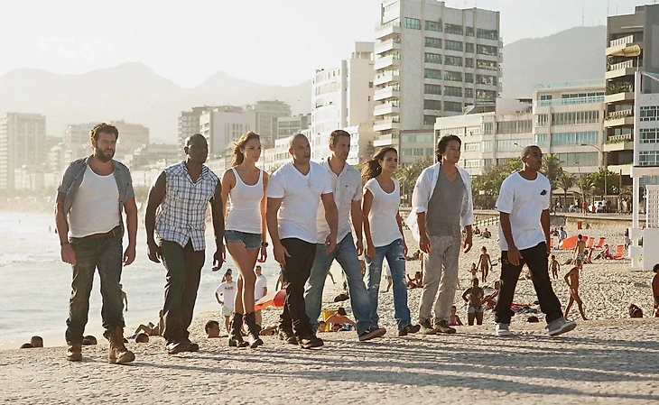 Fast Five – всеобщий любимчик и самый высокооцененный фильм серии среди последних. Я вот его ценю за «воссоединение семьи», как сказал бы Торетто. Дом надумал украсть 100 млн долларов у человека, который его подставил, но нужна команда первоклассных гонщиков. В игру вернулись герои предыдущих «Форсажей» вроде Романа, Теджа, Жизель и Хана. Вместе они грабанут мафиози Рейеса, который контролирует Рио-де-Жанейро.