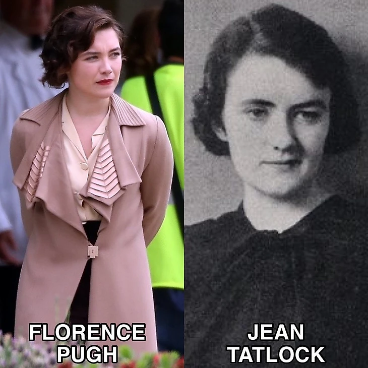 4) Флоренс Пью – Джин Фрэнсис Тэтлок. Психиатр и врач, журналистка Western Worker. Известна своими романтическими отношениями с Робертом Оппенгеймером. Тэтлок начала встречаться с Оппенгеймером в 1936 году, когда была аспиранткой в Стэнфорде, а Оппенгеймер занимал должность профессора физики в Калифорнийском университете в Беркли. Из-за этих отношений и членства Тэтлок в Коммунистической партии она находилась под наблюдением ФБР.