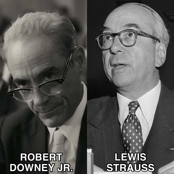 3) Роберт Дауни-младший – Льюис Штраусс. Бизнесмен, филантроп и морской офицер, который два срока проработал в Комиссии по атомной энергии США. Сыграл важную роль в разработке ядерного оружия, ядерной энергетической политике США и развитии ядерной энергетики. На посту председателя Комиссии призывал к мирному использованию атомной энергии; сделал опрометчивый прогноз о том, что благодаря атому электроэнергия станет «слишком дешевой для учета».