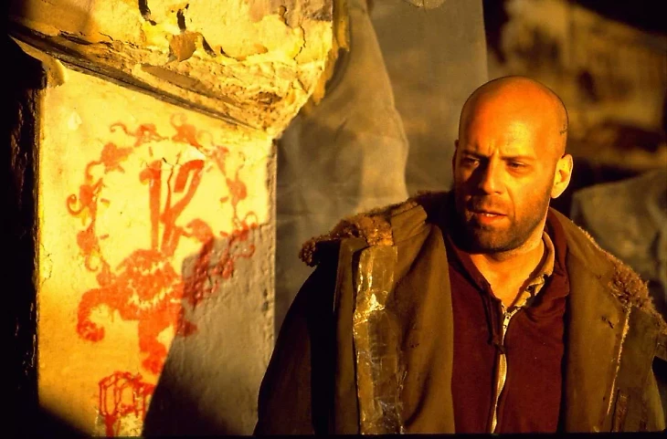 Здесь Уиллис играет детского психиатра. Еще одна вдумчивая и спокойная роль. Весь фильм он общается и пытается помочь девятилетнему мальчику, которого посещают страшные видения. Но это далеко не фильм-диалог, это закрученная психологическая драма с неожиданной развязкой. Еще у фильма есть отсылки на «12 обезьян»: имя героя – Коул; фраза: «Все, кого я вижу, на самом деле мертвецы»; город действия – Филадельфия.