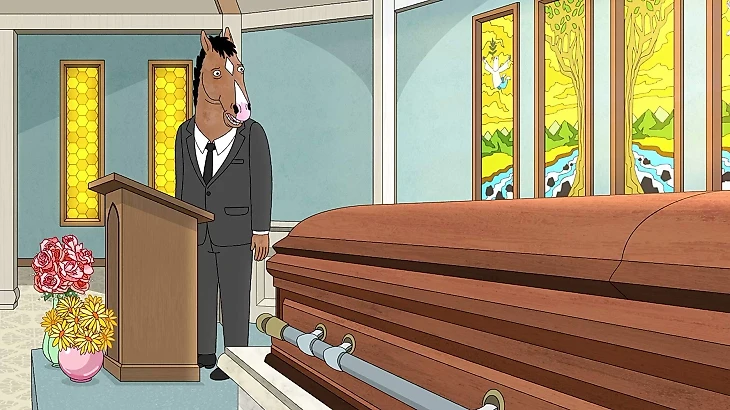 В шестой серии шестого сезона «Бесплатные чуррос» действие происходит в морге. Вся серия – это речь БоДжека об умершей матери, то есть практически похоронный стендап, поставленный одним-двумя планами без всяких перебивок. Никаких других героев, никаких перебивок, никаких сцен из прошлого, никаких других локаций. Только гроб, БоДжек и трибуна. Даже в анимационном сериале нужна большая смелость, чтобы посвятить целый эпизод монологу, поставив на паузу остальные линии. Именно такие ходы сделали «БоДжека» из просто мощного сериала революционным.