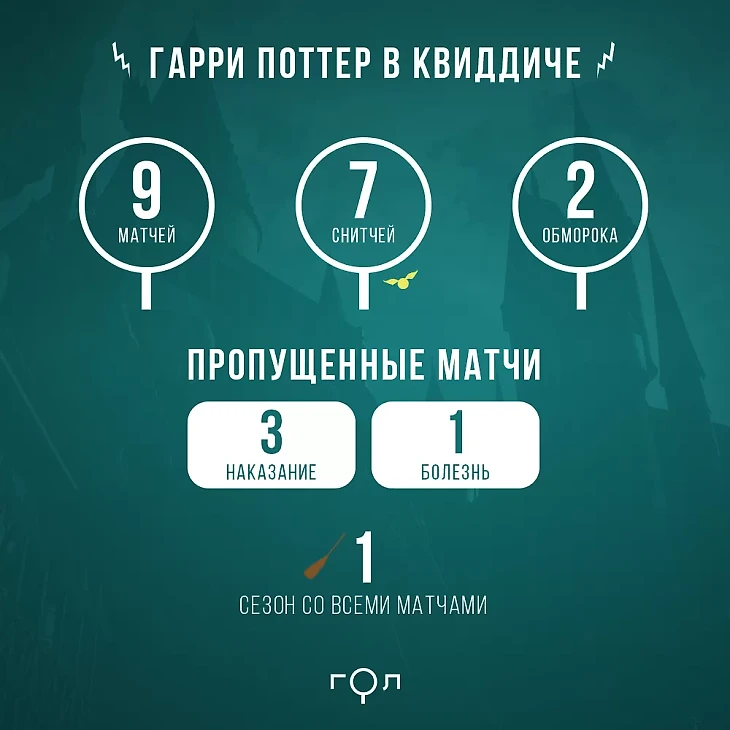 Теперь − прикол. Джинни Уизли ловила снитч во всех своих матчах (где играет на этой позиции, а не на позиции охотника). То есть у нее 100% успеха. У самого Гарри Поттера статистика хуже. Он ловил снитч только в 7 из 9 игр. И при трех чемпионских сезонах только один провел полностью без пропусков.