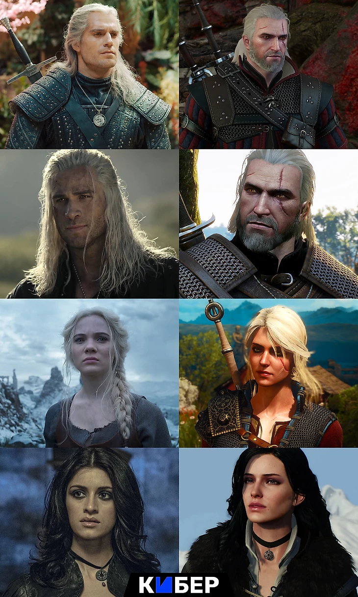 Центральные персонажи – сердце проекта, поэтому создатели игр и сериала почти не отходили от канона. Больше всего проблем возникло с Геральтом. CD Projekt поменяла концепт персонажа ко второй игре, а Белый Волк утратил часть жилистости и жутковатости, зато получил более яркий образ, который попал в массовую культуру.