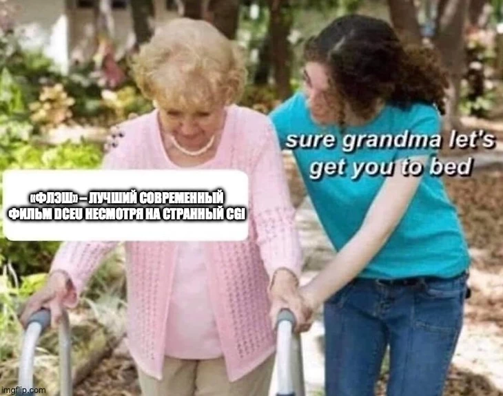 Так было до июня-июля. Волшебный параллельный импорт, позволявший россиянам смотреть голливудские блокбастеры практически одновременно с миром, превратился в тыкву. Я все еще смотрел «Флэша» и «Индиану Джонса» в первые дни проката, но лишился возможности обсуждать их в привычных кругах. Конечно, я все равно продолжил делиться мнениями о фильме – в рецензиях на Кибере и в чатах, – но теперь я ощущал себя бабушкой из моего любимого мема, которой улыбчиво кивают и отвечают: «Конечно-конечно, бабуля, пойдем уложим тебя спать». Потому что для этих людей я рассказываю о каких-то небылицах, которые появятся в их жизни в лучшем случае спустя пару месяцев.