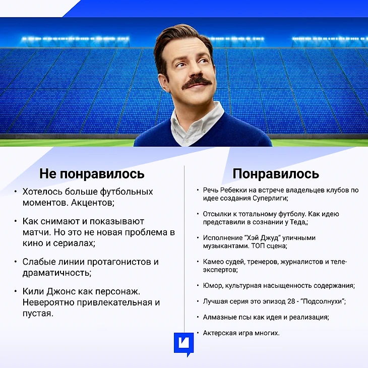 Мотивация и позитивность. Если вы до сих пор уверены, что один в поле не воин. То это не так. Тед Лассо это про скорее, что капля камень точит. Один человек может изменить все и всех. Своей энергией и посылом. Искренней верой в лучший путь, ведь результаты и правда не важны, если ты идешь по правильному пути, у окружающих тебя людей все хорошо. А значит и у тебя все хорошо. Это прекрасный путь доброты и искренности, когда ты все-таки задумаешься чтобы с понедельника начать бегать по утрам.