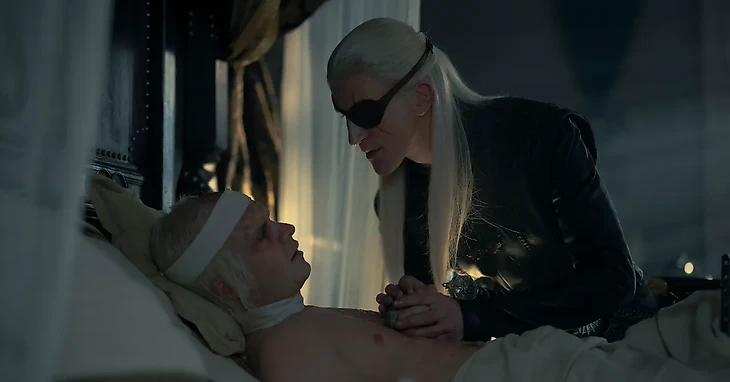 Эймонд Таргариен, безжалостный и властолюбивый принц, пользуясь временной неспособностью своего брата Эйгона править из-за ранений, полученных в битве при Рукс-Ресте, занимает Железный трон и демонстрирует свою жажду власти. Его безрассудство и жестокость, подкрепленные мощью дракона Вхагар, делают его грозным противником для «Черных». Кульминацией напряжения между братьями становится визит Эймонда к раненому Эйгону. Несмотря на боль брата, Эймонд давит на его раны и оставляет в его руке загадочный предмет – один из шаров, используемых на заседаниях Малого совета. Этот жест, сопровождаемый лицемерным поцелуем в лоб, оставляет Эйгона в замешательстве и вызывает тревожные предчувствия.