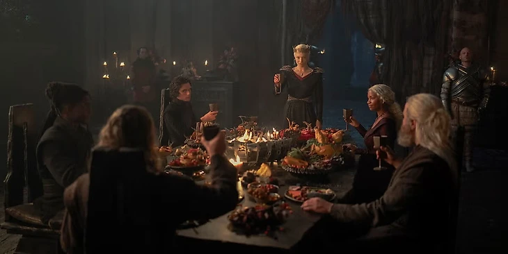 Оглядываясь на события второго сезона, что вы о нем вспомните? Как Сыр пнул собаку под хвост, как Деймон спит в Харренхолле, Алисента и Рейнира молятся, а потом Алисента красиво плавает в озере? А ведь вообще-то война «черных» и «зеленых» началась еще с первой серии, но вспоминаешь об этом только в четвертой (и быстро забываешь в следующей).