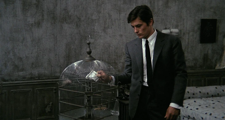 Недосягаемая привлекательность актера всегда оставалась объектом наваждения кинокамеры. Каждый фильм он наделял особенным магнетизмом и визуальным великолепием. Эти шляпа, воротник-стойка, томный взгляд и дождь, обрамляющий силуэт Делона… При просмотре замечаешь, как с азартом цепляешься за каждый крупный план актера, движения и молчаливые паузы.