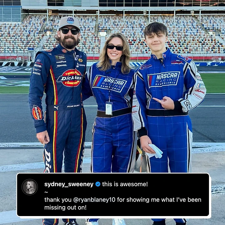На днях Сидни поучаствовала в программе NASCAR Racing Experience, национальной ассоциации гонок серийных автомобилей. Милые фотографии с автодрома «Шарлотт Мотор Спидуэй» в Северной Каролине она опубликовала вместе с благодарностями Райану Блейни, чемпиону NASCAR Cup 2023: «Это было классно! Спасибо Райану за то, что показал мне то, чего я раньше не видела».