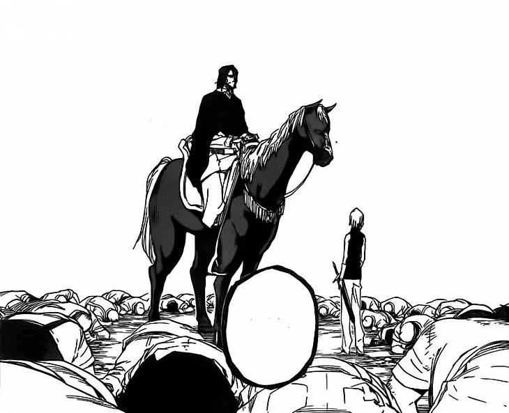 Когда Ичиго разрезает Яхве пополам, тот растворяется в массе тьмы, которая затем поглощает ошеломленного Айзена. Замечая, что сила Кьека Суйгецу кажется исчерпанной, Яхве восстанавливается и спрашивает Ичиго, действительно ли тот считал, что атака такого уровня может его убить. Он заявляет, что способен переписать даже будущее своей смерти с помощью Всемогущего. Яхве выбивает Тэнсу Зангецу из руки Ичиго, поглощая меч вместе с остальной частью Сейрейтея своей тьмой. Он провозглашает, что все потеряет свою форму и станет единым под его силой. Однако Яхве прерывает свою речь, когда Урю стреляет серебряным наконечником стрелы прямо в его грудь. Это вызывает удивление у него самого и у Ичиго, так как тьма, окружающая Яхве, внезапно исчезает, что побуждает Урю крикнуть Ичиго, чтобы тот немедленно действовал. С треснувшим банкаем в руках Ичиго бросается на Яхве, который начинает восстанавливать свои силы и, по-видимому, ломает клинок в своей руке. Однако вместо этого клинок распадается, открывая оригинальную форму Зангецу в руках Ичиго, что заставляет ошеломленного Яхве понять, что это именно то, о чем Хашвальт пытался его предупредить в своем сне. Когда Ичиго разрезает его пополам, Яхве хватает Зангецу и жалуется Ичиго, что путь к миру без страха теперь закрыт, сетуя на то, что жизнь продолжится, как всегда, в бесконечном цикле жизни и смерти.