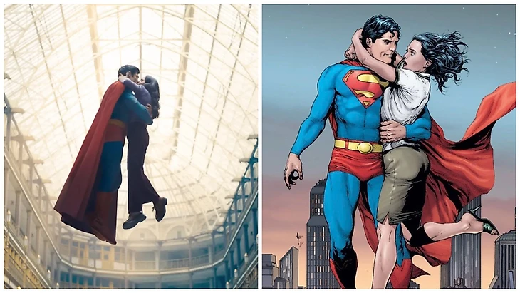 В трейлере есть момент, когда Кларк и Лоис целуются в воздухе, повторяя каноничную обложку комикса. На вопрос, в какой стадии находятся отношения героев, Джеймс Ганн ответил:
