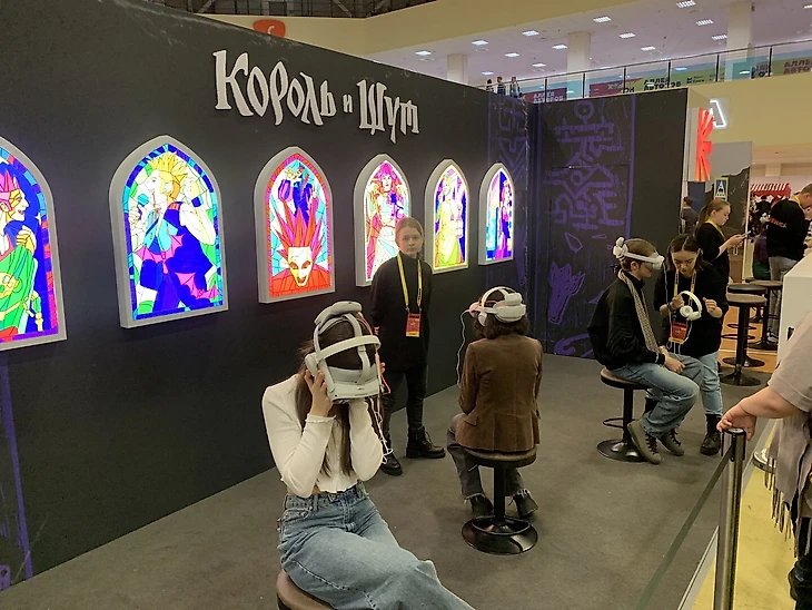 11:40. Иду к стенду с VR-игрой по «Кибердеревне» и вижу огромную очередь. Зато у соседнего VR-стенда «Короля и Шута» свободно. Не имею понятия, что там, но радостно прыгаю на место. Сотрудники натягивают шлем и тут же приводят в восторг. Это «Мертвый анархист» в виртуальной реальности!