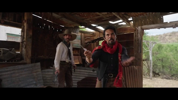 А вот эпизод из «Золота Рио Браво». Невский снова спасает Джо Корнета от мексиканцев. Вместо расстрела они дерутся с другом Шварценеггера на ножах. Чем все заканчивается? Сами знаете.