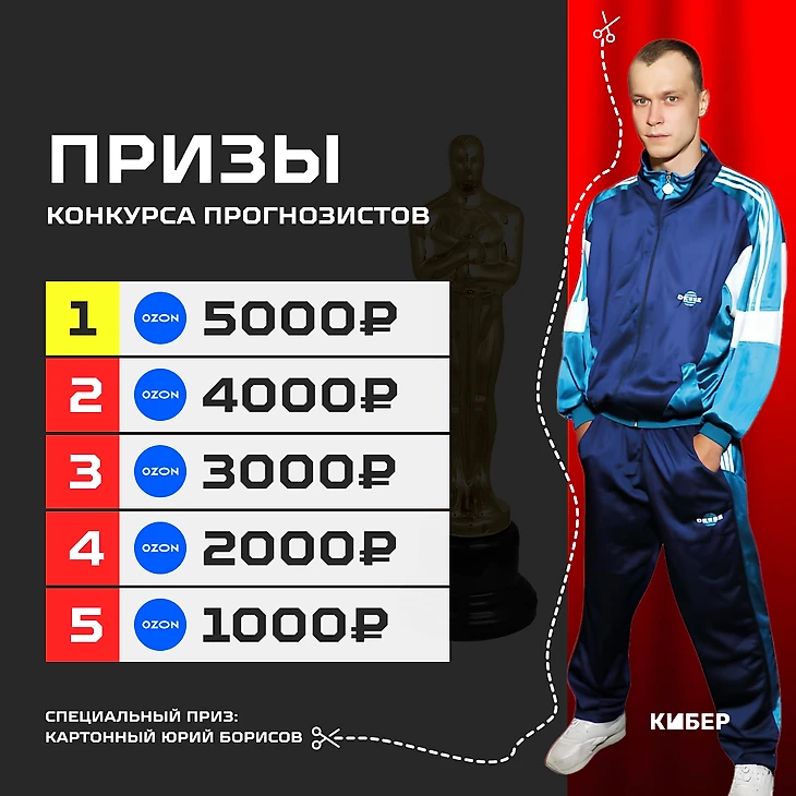 В ночь на 3 марта прошло ежегодное вручение премии «Оскар». К церемонии награждения Кибер запустил конкурс прогнозов: вам нужно было угадать победителей в номинациях и написать их в комментариях к этому посту.