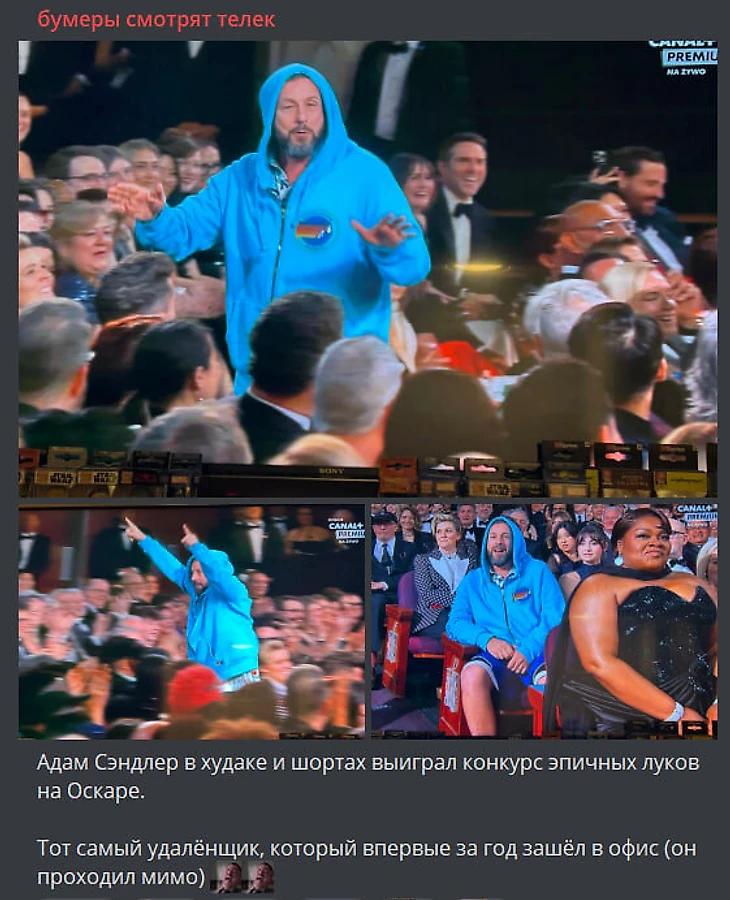 Чилловый Адам Сэндлер, шутки про Борисова и другие мемы с церемонии «Оскар»