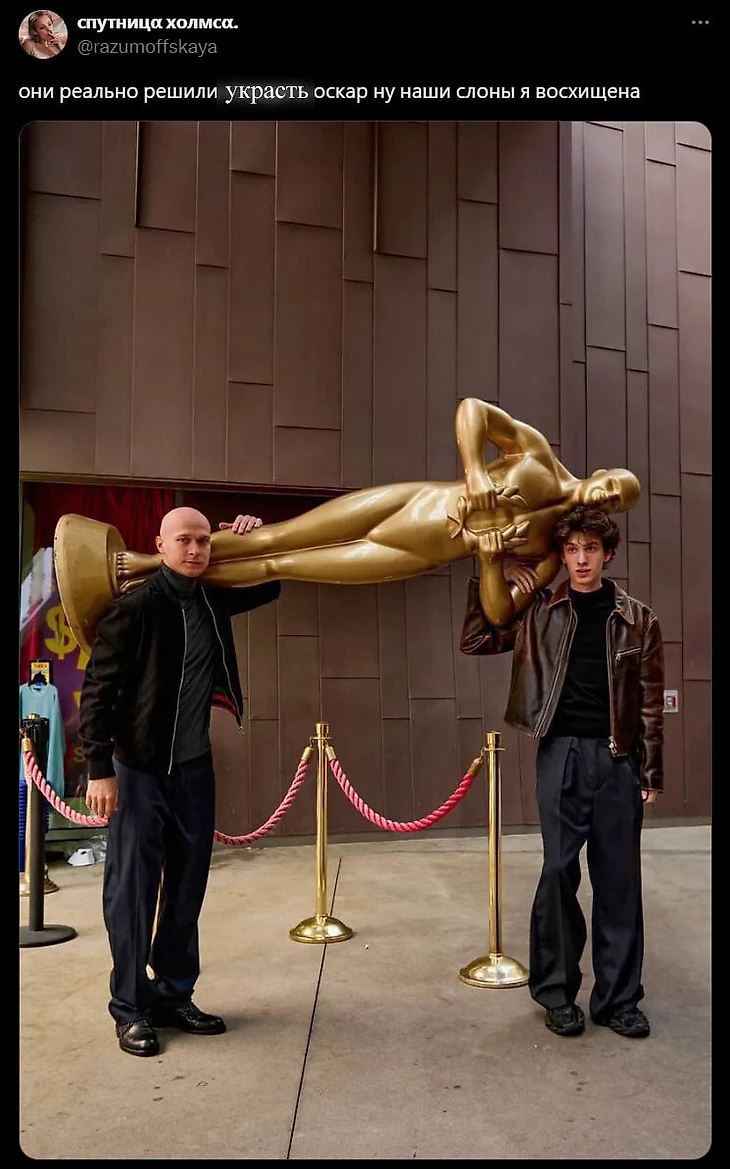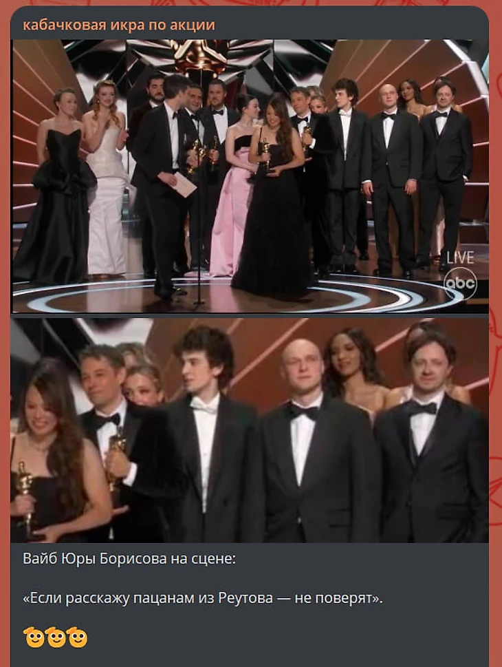 97-я церемония награждения «Оскар» подошла к концу – «Анора» феноменально забрала пять статуэток, в том числе и за лучший фильм. Юра Борисов все же остался без «Оскара», зато снова сгенерировал мемы одним своим присутствием. О чем шутили во время церемонии? Читайте в подборке Кибера.