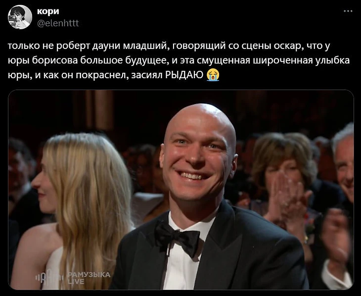 Увы, Борисов не получил «Оскар», хоть фильм и забрал пять статуэток. Зато Роберт Дауни-младший похвалил актера, это было трогательно.
