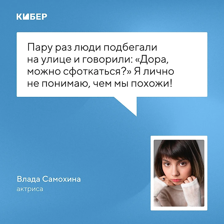 – Ой, это смешно. Пару раз люди подбегали на улице и говорили: «Дора, можно сфоткаться?» Я лично не понимаю, чем мы похожи!