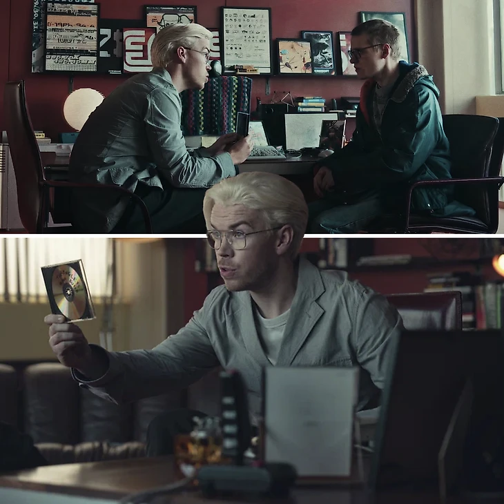 Зритель возвращается в прошлое – юный журналист и обозреватель видеоигр Кэм приходит в офис Колина Ритмана (Уилл Поултер), того самого странного гения из «Брандашмыга», спин-оффа «Черного зеркала».
