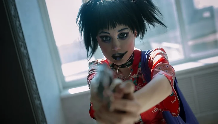 Азиатский футуристический город. Девушка собирается на работу и слышит шум за окном. Параллельно флешбеками показана схватка между мужчиной и женщиной. Девушка выглядывает на улицу и видит в окне противоположного дома забрызганного кровью мужчину. Тот вглядывается в лицо за окном, затем переводит взгляд на жертву и понимает, что это один и тот же человек. Свидетельница в ужасе выбегает на улицу, садится в такси и уезжает. В машине она звонит по телефону в полицию, но сильно взволнована и не может назвать свой адрес. Мужчина сел в другое такси и преследует ее.