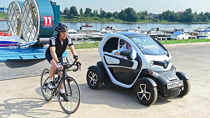 Фанаты «Топ Гир» в России долгое время хотели, чтобы один из выпусков шоу был снят в их стране. В 2014 году ведущие посетили Санкт-Петербург. Они, в свою очередь, давно хотели сравнить, на каком виде транспорта можно быстрее всего добраться из одной точки в другую в большом городе. Санкт-Петербург с его улицами, водными артериями подходил идеально. Каждому достался свои вид транспорта. Джеймс Мэй получил необычный и очень маленький одноместный электромобиль Renault Twizy, чья длина не превышает размеры мотоцикла. По мнению Мэя, на таком транспорте можно легко и быстро добраться до нужного места в городе. Ричард Хаммонд решил проехать на велосипеде. Во-первых, это экологически чистый вид транспорта, во-вторых, на нем можно объехать все пробки. Велосипед гоночный и очень быстрый с большим количеством переключения скоростей.