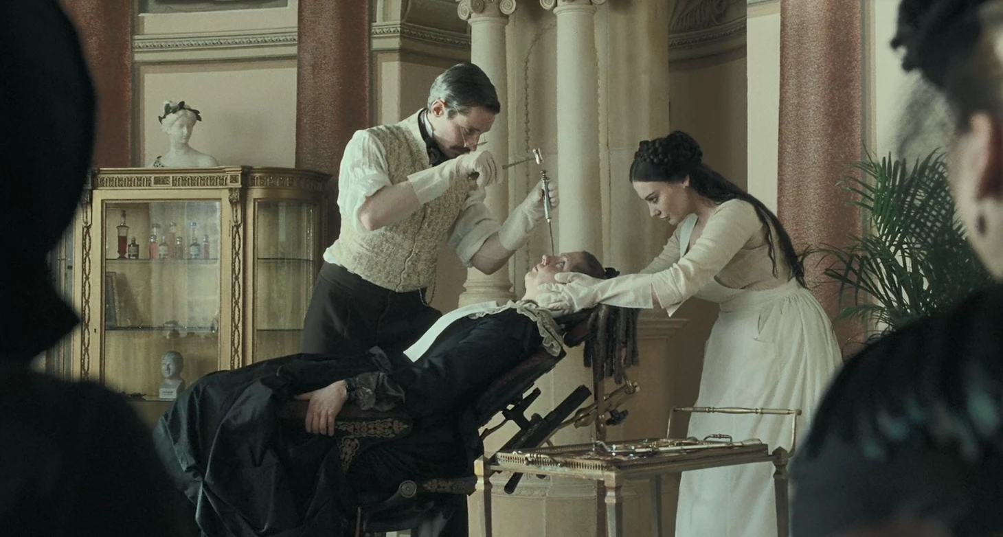 Важная деталь: вначале мы видим мечты Эльвиры в розовых тонах – и в этих мечтах она выглядит такой же, как и в жизни, разве что чуть наряднее. В конце цветокор становится холодно-голубым: в грезах Эльвира видит себя в синем платье и светлыми волосами – как образ Золушки. На пути к самосовершенствованию и попытках подражать Агнес она теряет себя.