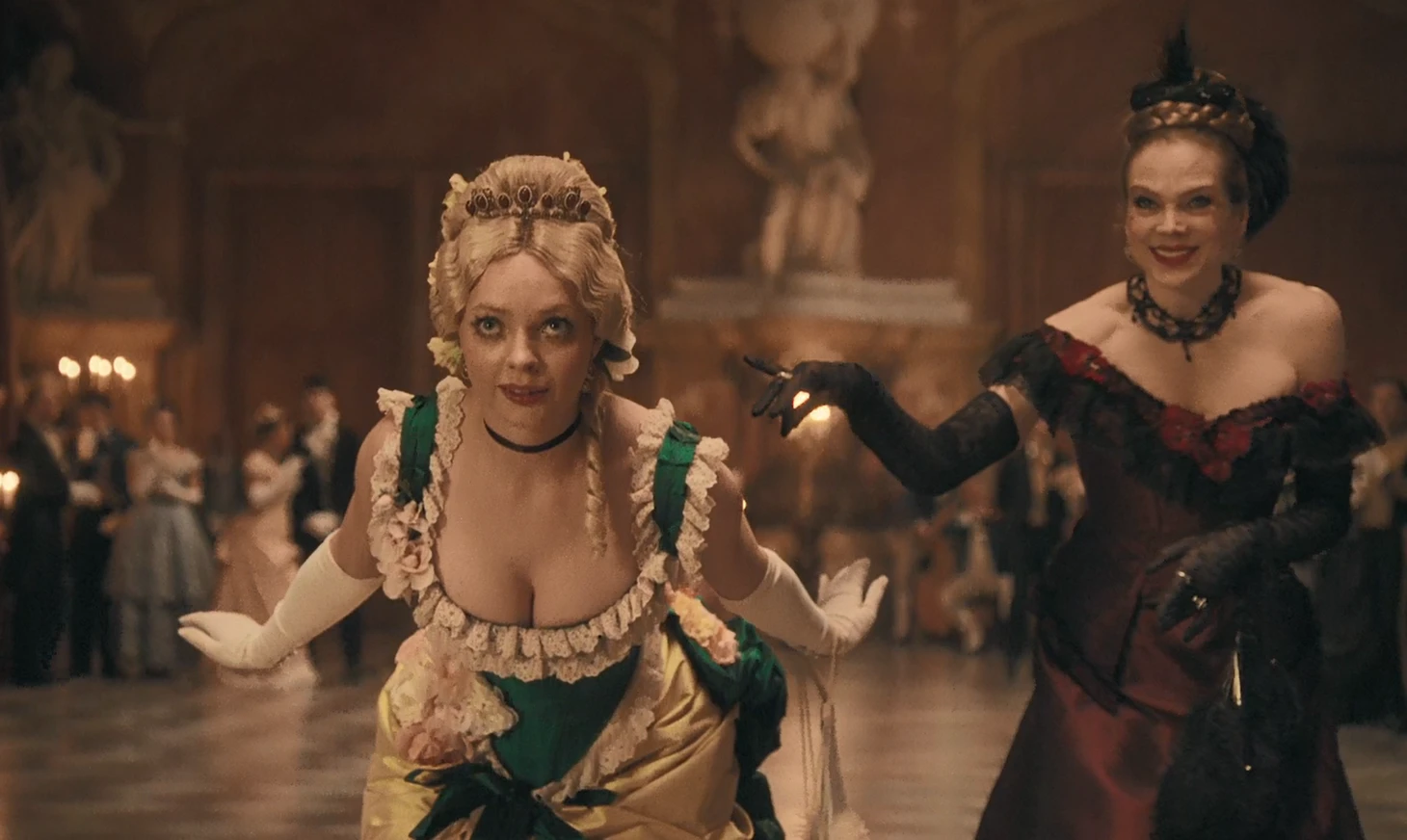 Кульминационная сцена – бал во дворце принца. Эльвира выдерживает все мучения, на которые пошла ради красоты. И действительно затмевает всех: теперь она эффектная блондинка с пышным декольте, на которую сразу обращает внимание принц.