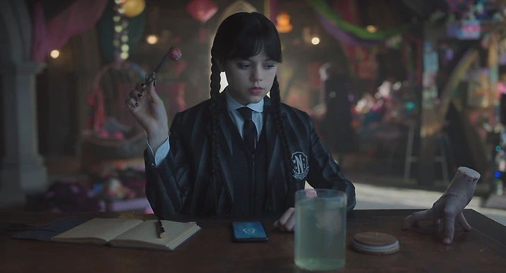В финале сезона Мортиша наконец отдает Уэнсдей дневник Офелии, своей давно погибшей сестры. В «Неверморе» каникулы, так что героиня уезжает из школы вместе с дядей Фестером и по дороге изучает записи. Через видение она узнает: Офелия жива. Тетя сидит в подвале у Хестер Фрамп и пишет на стене «Уэнсдей должна умереть».
