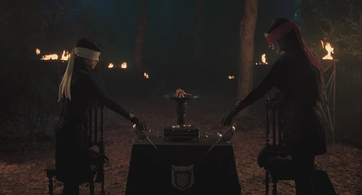 Уэнсдей приходит к матери и требует книгу. Она вызывает на дуэль вслепую – старая традиция Аддамсов. Побеждает тот, кто первым разобьет стеклянное сердце противника. Если победит Уэнсдей, Мортиша вернет книгу, а если проиграет, книгу сожгут. Мортиша соглашается.