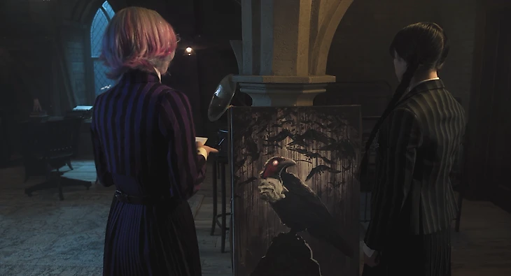Уэнсдей получает письмо от Ксавье, который теперь учится в академии Райхенбах в Швейцарии. Он присылает ей картину с вороной с красным глазом. Ксавье чувствует, что эта птица связана с ней.