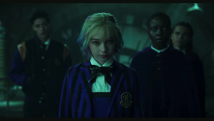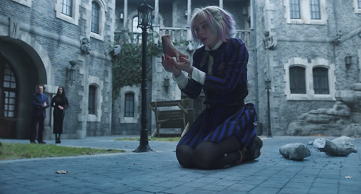 Дорт объявляет Уэнсдей почетным студентом и показывает картину, на которой изображены она, Энид, Бьянка и Юджин. Уэнсдей в ярости сжигает картину и отказывается быть героиней. Она заявляет, что заботится только о себе и разрушит любой пьедестал, на который ее возведут.
