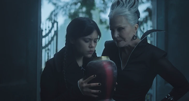 В Неверморе Уэнсдей врывается в мавзолей и выхватывает урну. Появляется бабушка Аддамс. Она говорит, что приехала по вызову для сбора компромата. Урна принадлежит Патрисии Редкар – пациентке Уиллоу-Хилл, чей некролог хранил Галпин.