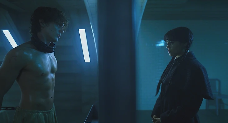 Она встречается с Тайлером. Тот закован в цепи и не собирается помогать даже после того, как узнает о смерти отца. Он пытается провоцировать девушку, намекая на совместное прошлое и угрожая Энид, но Уэнсдей не поддается. Когда он начинает превращаться в Хайда, охрана использует ошейник, чтобы остановить его.